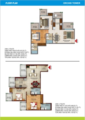 2 BHK + 2 Toilets - 1105 SQFT & 1135 SQFT